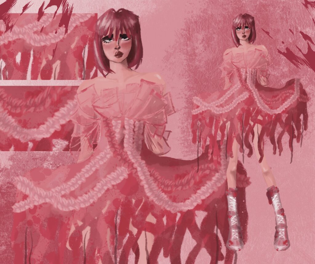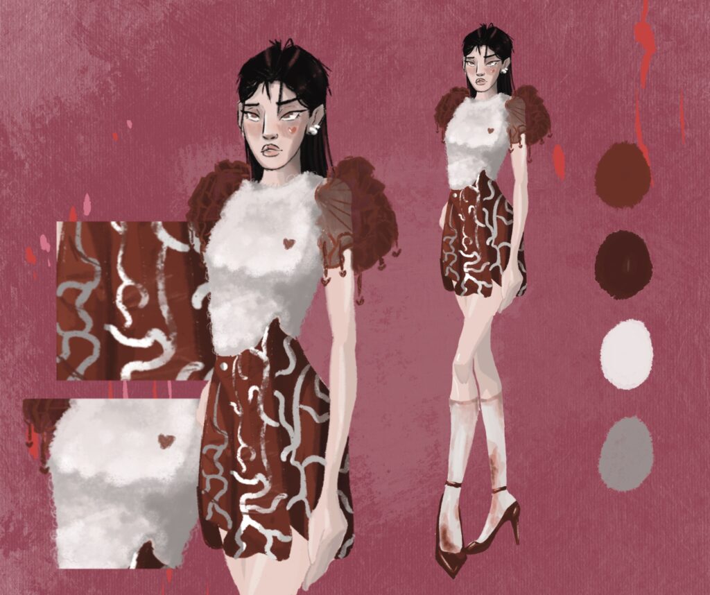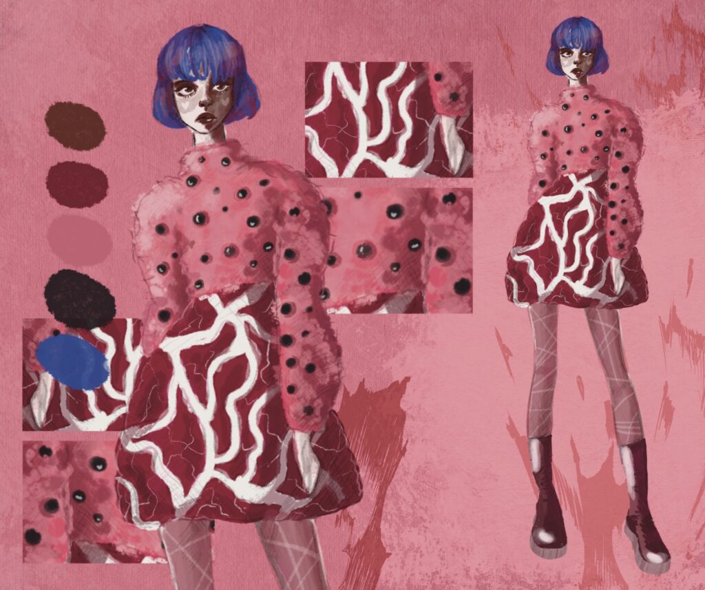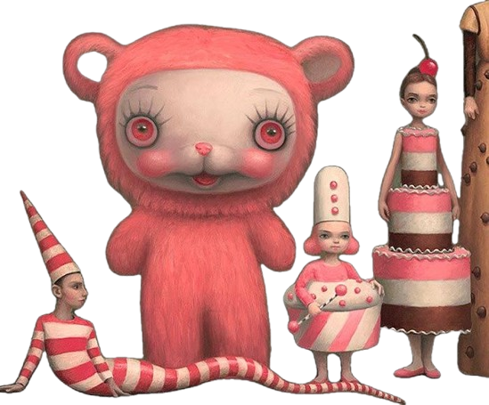 La vision completa de este mundo presenta una contraposicion de lo infantil y tierno con lo grotesco y crudo, que se mueve entre lo camp y lo gore, con siluetas redondas, voluminosas, desiguales y peludas.