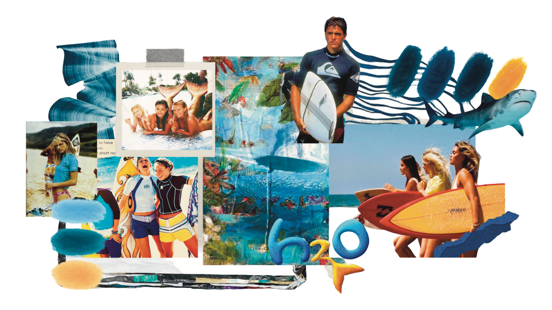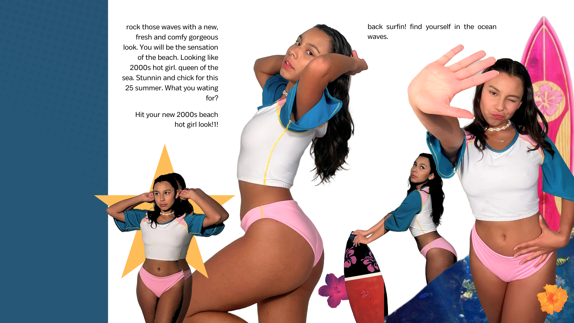 00s Back Surfin! hace parte de una nostalgia por los 2000’s, ubicada mas exactamente en la playa. Se diseña para el estilo de vida deportivo y natural que se da en esta zona costera, idealmente para la practica aficionada de uno de sus deportes mas tradicionales: el surf. El indumento pretende referenciar la fauna y flora características del océano y elementos populares en aquel inicio de milenio, como la serie H2O, que refleja la cotidianidad de adolescentes surfistas mezclando también fantasías populares de la epoca como las sirenas, con el propósito de provocar en el usuario una conexión con su infancia.